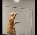 ちょっぴりロマンチックな猫が…光に向かって手を伸ばす(動画)