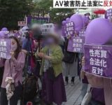 AV反対デモの写真、後ろに○○が写り込んでしまい、とんでもない風刺画みたいになってしまう
