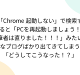 「Chrome 起動しない」で検索すると「PCを再起動しましょう!筆者は直りました!!!」みたいなブログばかり出てきてしまう「どうしてこうなった!?」