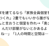 家を建てるなら「家族全員個室をつくれ」2畳でもいいから誰がなんと言おうと個室を作れ→「奥さんだけ部屋がないとかあるよね…」「1人の時間と空間は大事」