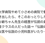 大学病院やめて小さめの病院で働き出したら、そこのおっとりしたお爺ちゃん先生の経歴が伝説の勇者クラスの人だった話→「伝説の女医や伝説の小児科医がいたりする」
