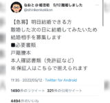 Twitterで『明日結婚できる方』が募集される→「スパイファミリーか?」「自傷癖拗らせて戸籍を傷つけたいは草」