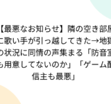 【最悪なお知らせ】隣の空き部屋に歌い手が引っ越してきた→地獄の状況に同情の声集まる「防音室も用意してないのか」「ゲーム配信主も最悪」