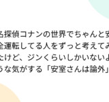 名探偵コナンの世界でちゃんと安全運転してる人をずっと考えてみたけど、ジンくらいしかいないような気がする「安室さんは論外」