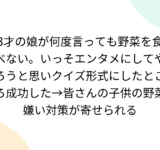 3才の娘が何度言っても野菜を食べない。いっそエンタメにしてやろうと思いクイズ形式にしたところ成功した→皆さんの子供の野菜嫌い対策が寄せられる