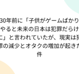 30年前に「子供がゲームばかりやると未来の日本は犯罪だらけに」と言われていたが、現実は犯罪の減少とオタクの増加が起きた件