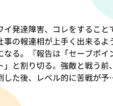 ワイ発達障害、コレをすることで仕事の報連相が上手く出来るようになる。『報告は「セーブポイント」と割り切る。強敵と戦う前、倒した後、レベル的に苦戦が予想される時、ゲームやめる時』