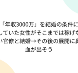 「年収3000万」を結婚の条件にしていた女性がそこまでは稼げない官僚と結婚→その後の展開に鼻血が出そう
