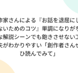 作家さんによる『お話を退屈にしないためのコツ』単調になりがちな解説シーンでも飽きさせない工夫がわかりやすい「創作者さんぜひ読んでみて」