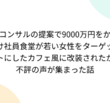 コンサルの提案で9000万円をかけ社員食堂が若い女性をターゲットにしたカフェ風に改装されたが不評の声が集まった話