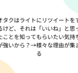 オタクはライトにリツイートをするけど、それは「いいね」と思ったことを知ってもらいたい気持ちが強いから?→様々な理由が集まる