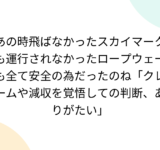 あの時飛ばなかったスカイマークも運行されなかったロープウェーも全て安全の為だったのね「クレームや減収を覚悟しての判断、ありがたい」