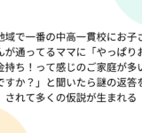地域で一番の中高一貫校にお子さんが通ってるママに「やっぱりお金持ち!って感じのご家庭が多いですか?」と聞いたら謎の返答をされて多くの仮説が生まれる