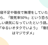 寝不足や徹夜で無理をしていたら、「致死率50%」という恐ろしい病気になっていたという話。「ゆるいオタクでいよう」「徹夜はマジでダメ」