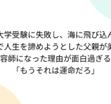 大学受験に失敗し、海に飛び込んで人生を諦めようとした父親が美容師になった理由が面白過ぎる「もうそれは運命だろ」