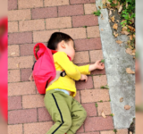 外出中拗ねてしまいヤムチャ状態で5分動かなくなった息子さん→拗ねてる姿と理由が可愛い「たまにハズレで全く飛ばないやつありますもんね」