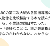 BBCの第二次大戦の各国指導者の人物像を比較検討する本を読んだら、不思議の国日本だった。→「奇妙なことに、誰が最高指導者なのかわからない。わからないのに戦争を遂行しているのもわからない」