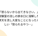 「怒らないから出てきなさい。」実験室の流しの排水口に溶解した寒天を流し大変なことになったらしい「怒られるやつ…」
