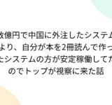 数億円で中国に外注したシステムより、自分が本を2冊読んで作ったシステムの方が安定稼働してたのでトップが視察に来た話