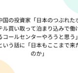 中国の投資家「日本のつぶれたホテル買い取って泊まり込みで働けるコールセンターやろうと思う」という話に「日本もここまで来たのか」