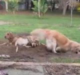 1匹の犬が土を掘ると…後ろで2匹の犬が埋まっていく(動画)