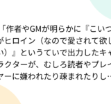 「作者やGMが明らかに『こいつがヒロイン(なので愛されて欲しい)』というていで出力したキャラクターが、むしろ読者やプレイヤーに嫌われたり疎まれたりしてしまう」現象