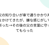 父の知り合いが車で通りかかり声をかけてきたが、嫌な感じがして断った→その後の父の言葉に守ってもらった