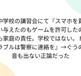 中学校の講習会にて『スマホを買い与えたのもゲームを許可したのも家庭の責任。学校ではない。トラブルは警察に連絡を』→ぐうの音も出ない正論だった
