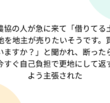 農協の人が急に来て「借りてる土地を地主が売りたいそうです。買いますか?」と聞かれ、断ったら今すぐ自己負担で更地にして返すよう主張された