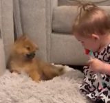 小さな女の子のハーモニカを聴いて…遠吠えで返す子犬(動画)