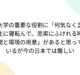 大学の重要な役割に「何気なく芝生に寝転んで、思索にふけれる時間と環境の用意」があると思っているが今の日本では難しい