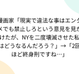 漫画家「現実で違法な事はエンタメでも禁止しろという意見を見かけたが、NYを二度壊滅させた私はどうなるんだろう?」→「2回ほど終身刑ですね…」
