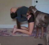 ヨガ中の女性に…犬がすっぽりと収まる(動画)