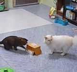 「まるで漫画…」箱に驚いた猫、垂直に跳び上がる(動画)