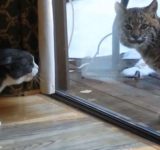 「相手は大きいのに大丈夫?」ボブキャットを威嚇する飼い猫(動画)