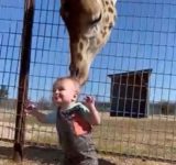大きなキリンが首を伸ばして…小さな男の子を愛でる(動画)