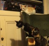 猫3匹がジーッと見つめる先には…走る鉄道模型のジオラマ!(動画)