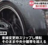 【画像】雪でスリップし横転した車のタイヤが酷すぎると話題に