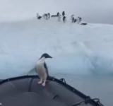 「ペンギンがアザラシから逃げてボートに乗ってきたので仲間のところまで送ってあげた…」かわいらしい一部始終