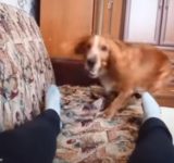 一連の動きが体操選手のように華麗…飼い主さんの上で添い寝する犬(動画)