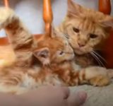 パパ猫にネコパンチで守られていた子猫が…真似してネコパンチを放つ(動画)