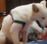 「見られちゃった…」ウトウトして倒れちゃった犬が照れる(動画)
