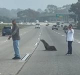 「高速道路をアシカが渡ろうとしてる!」→親切なカップルが交通誘導(動画)