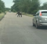 あらぶる赤ちゃんゾウが…車にプレッシャーをかけて下がらせる(動画)