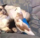 とても礼儀正しいハトが…猫にお辞儀を繰り返す(動画)