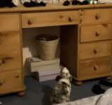 さすがウサギの跳躍力…ドレッサーの上にジャンプする(動画)