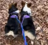 散歩中の犬2匹が同時にお気に入りの「木の枝」を拾ったら…(動画)