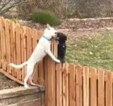 「隣の犬とうちの犬は仲良し過ぎて…柵越しにあいさつする」(動画)