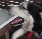 食いしん坊な犬がテーブルをかじりながら眠ってしまう(動画)