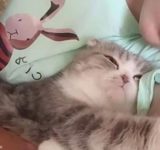 ロシア女性の胸の中で眠る猫が「キスして…」と催促(動画)